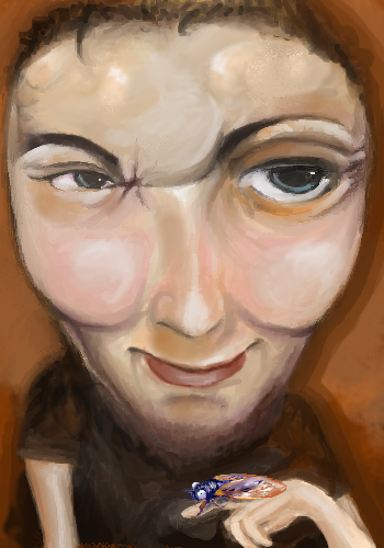 Yuck, june bugs are creepy, Kasha *shudders* They hiss and stuff..man, I hate those things :PNifty stuff, Icats. That bug's colors are really vibrant and cool, although I don't believe I'd want one flying around me if they're that huge :P The best part of this entire piece are the cheeks; I love 'em!