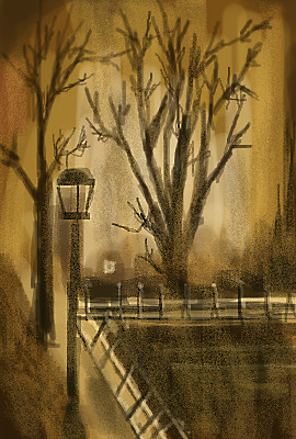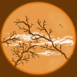 It's pretty, I love the diffused amber light. But those trees make it seem unfinished. If you fixed those this would be so much better. |