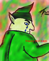 lol! the poor christmas elf!elves of christmas, i salute you! p.s. the left arm is weird. or is that his poor wittle back and butt crack? |
