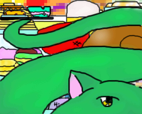 I just thought of drawing something, so I drew a dragon and I placed a try on its tail,then I thought that I should add food in the backround.