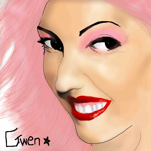 its GWEN!! O.O THIs is just.. more of a sketch than out line, ill go over it again the next time i work on itUJASDBOAUBDAI CAN'T DO HAIR!! >( DDAMN! -ill try to fix it all next time i gotta go