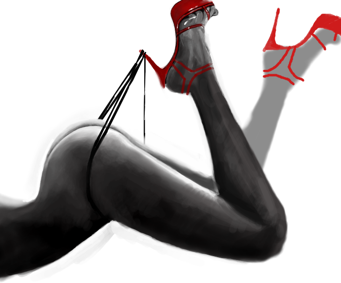 sex ay....love the shiny shoes! the g string is nicely placed on the heel, too...very creative.