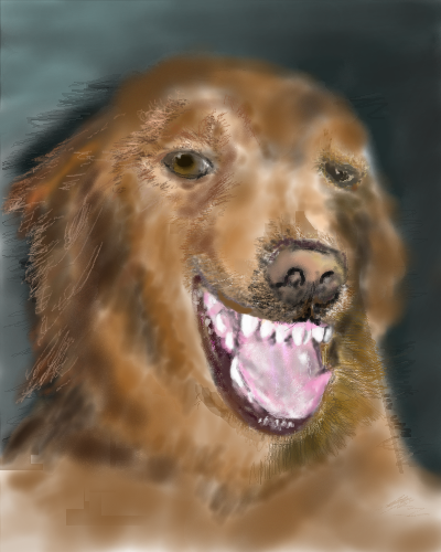 Hehe, what a happy dog! And he is showing his beautiful teeth, nice smile! Oh i do love how you did the fur, he looks so soft :D ! Very nicely done Dave!