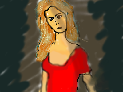 Not bad drawing. I find that her dress collar is sitting little bit to low. You could add some greenish color to the background because it is usually looks pretty against the red ( but that is just my opinion).