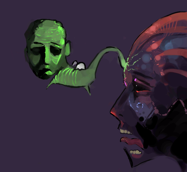 is that sprouting from his forehead? wow things you come up with are impossibly great.