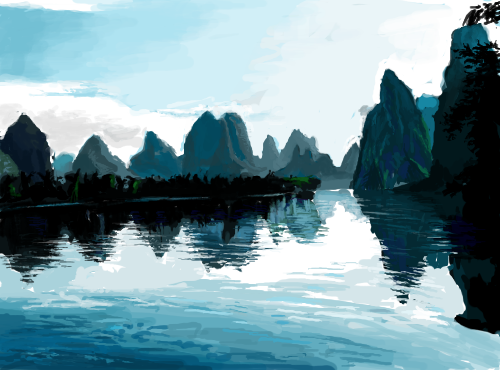 Beautiful work on the water and the mountainous peaks. Absolutely wonderful!
