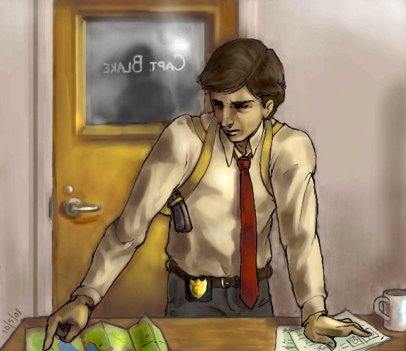 The captain looked up as one of his detectives entered the office. The detective didn't wait to be acknowledged. He just went up to the desk and spread his papers and maps over top of the paper work Capt. Blake had been reviewing. "I've been thinking, captain. We need to expand our search to include the rest of the park." "Mackers . . . ," "I know we've been searching the east side but I think we'll have better luck finding him if we look near the lake and bike trails. Of course we could always-" "Mackers, stop." The detective looked up at the captain. "Sir?" "What are you doing here?" Mackers avoided the captain's eyes. "I thought I could help with the search." Capt. Blake sighed. "You know that isn't your place." "But, if I may, sir, I just thought-" "No, Mackers, you may not. You still have your job to do. You're still on call." "But sir, he's my partner!" "Which is all the more reason we need you to continue the case load. I know your worried. I am too, believe me. But the system can't just stop because you want it to. Right now we have every resource we can spare looking for Randles. They know what they're doing." Capt. Blake looked at Mackers. He looked small and tired, past the point of arguing. "When was the last time you went home?" Mackers didn't answer. "I'll put Vecchio and Benton on your shift. You go home and get some sleep. Your not doing anyone any good wearing yourself out."