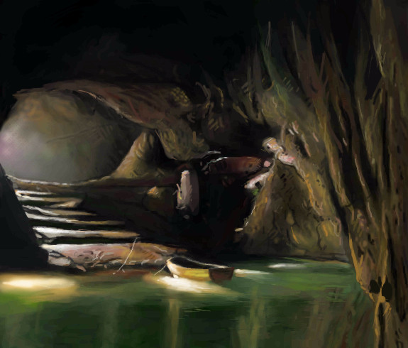 Looks like it could be the boat from Gollum's cave. And that's the tunnel he went chasing after Bilbo in. :)