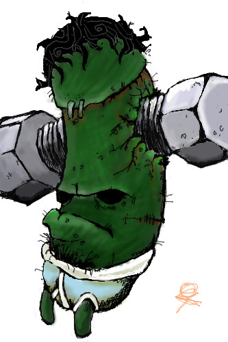 For those of you too innocent or clean-minded to see it, here's a hint: It's Frankenstein's "other head". The name of the piece isn't exactly subtle either but sure, maybe it's just meant to look like a frankfurter (sausage). :)