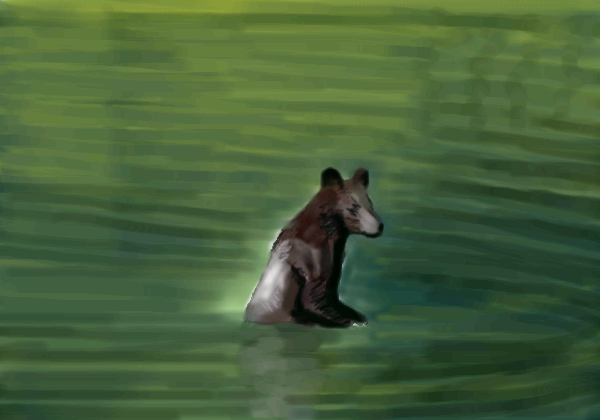 Let's go swimming swimming... I'm loving it, it kind of looks like Lori's bear from last week. As if it rolled of the bank and dipped in the lake.