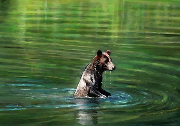 Let's go swimming swimming... I'm loving it, it kind of looks like Lori's bear from last week. As if it rolled of the bank and dipped in the lake.
