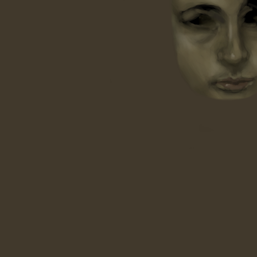 Make the bg look like warm mud..have her fingers comingup out of it like half her face is..that would look cool