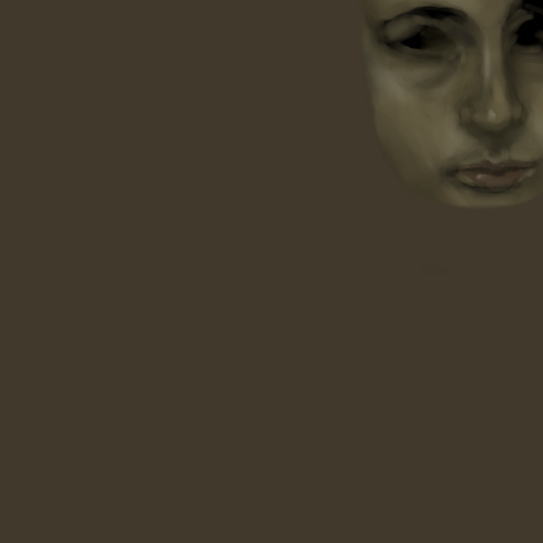 Make the bg look like warm mud..have her fingers comingup out of it like half her face is..that would look cool