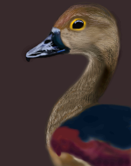 I love the texture in the neck and beak, wonderful draw. =) It really does seem to pop right out of the screen.