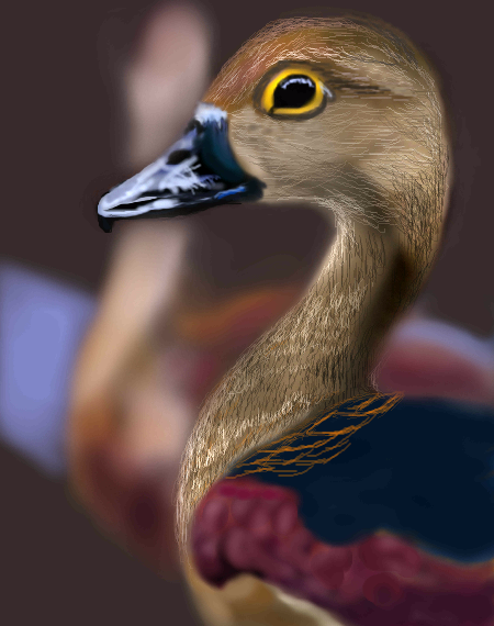 I love the texture in the neck and beak, wonderful draw. =) It really does seem to pop right out of the screen.