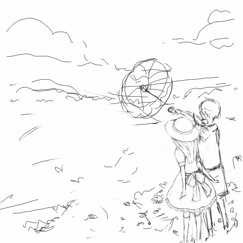 There is no light in a world where you are not here with me.In my mind, umbrellas are magical artifacts that can do all sorts of incredible things, like hoist people into the air so that they can sail across clouds and seas of bluebirds. And make black and white worlds colored, apparently. Let's see if I actually finish this one.
