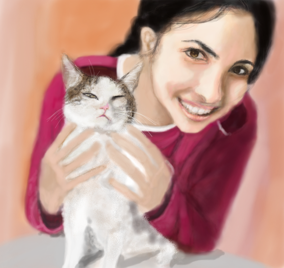 She's very pretty with a lovely kitty. Great soft colors! Nice work!