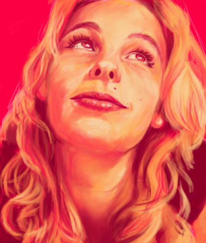 I like how youve used the pink for the darks! I like all your stuff so far, keep up the good work marion :p she's really pretty aswell, do you know her or is it just some random photo?