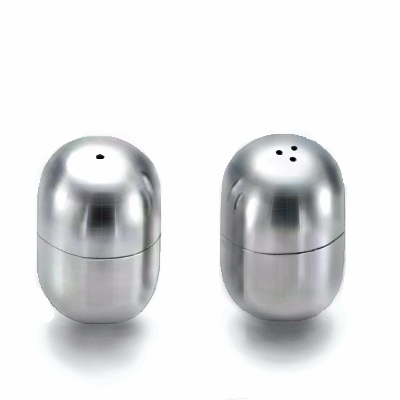 shiney shiney. I'd like to reach and grab that. Are those futuristic..matrixy salt and pepper shakers? I guess you wouldn't have to worry about spilling salt :)