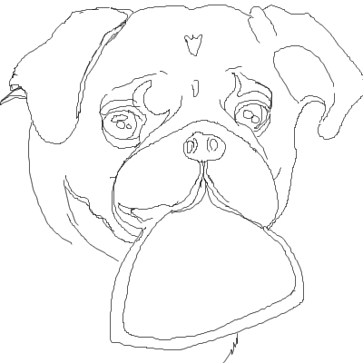 This is GREAT! Looks like a pug, only less wrinkly. Obvioulsy it's unfinished, cause of the thing in its mouth a bg but it's really good. I'll see it when it's ready again :).