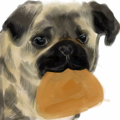 This is GREAT! Looks like a pug, only less wrinkly. Obvioulsy it's unfinished, cause of the thing in its mouth a bg but it's really good. I'll see it when it's ready again :).