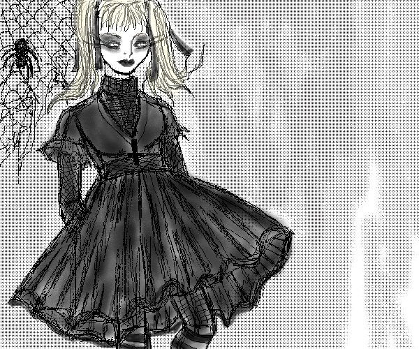 whoo this is nifty!. . . she's really creepy looking ..i love the spiderweb . hm, maybe you should add something to the empty space on the right though. . . because every time i look at the picture my eyes eventually drift to the empty space. . .there are plenty of things you could add ^.^