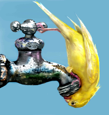 "Awwwwww".....I really love this one!! The faucet looks fantastic, and that little bird is just too adorable.....is it a canary, or a yellow parakeet? I'll probably come back to look at this again.....I love it!!! :)