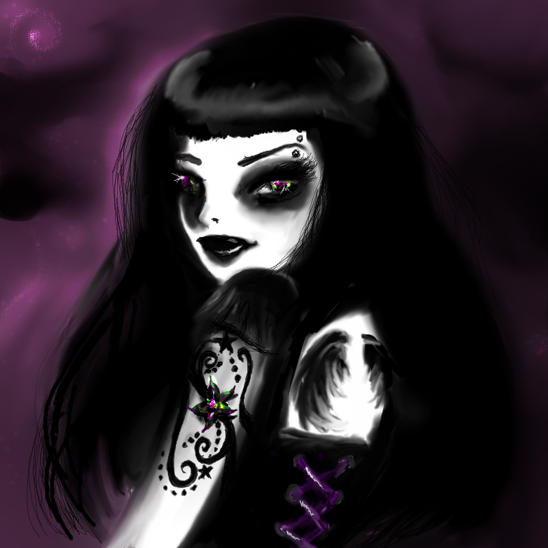 Very sultry looking....she looks like she could be very "high maintenance"! "LOL"!! I like the sparkly eyes, and the sparkly jewel on her arm. Great draw!! :)