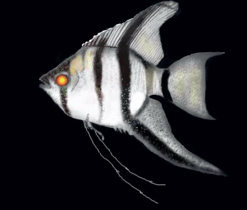 I have a feeling this is heading to my list of fav's! I had 2 angel fish like this at one time of my life...their top and bottom fins got so long! I had no idea! Cool memory...excellent draw!