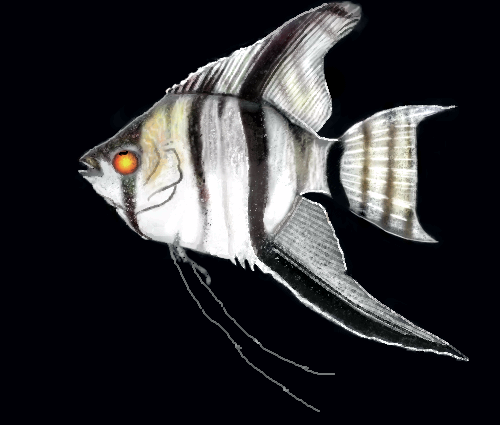 I have a feeling this is heading to my list of fav's! I had 2 angel fish like this at one time of my life...their top and bottom fins got so long! I had no idea! Cool memory...excellent draw!