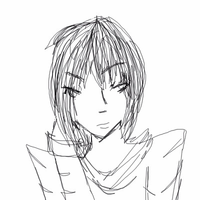 Not done yet. Next things to do on this: Clean lines, change position of mouth, fix fingers, add lines for hair.