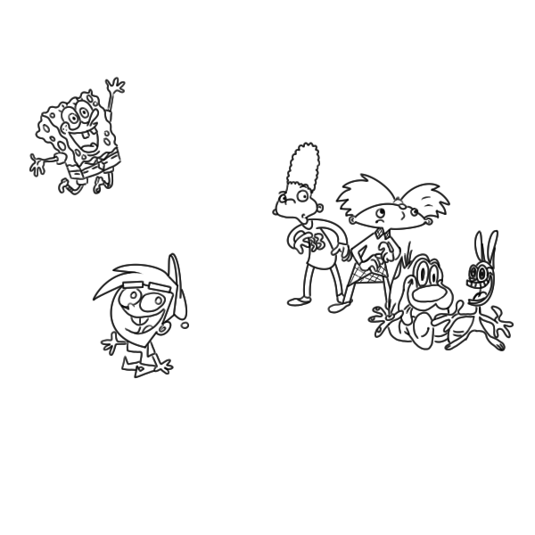 SpongeBob SquarePants (Spongebob) Ren & Stimpy (Stimpy & Ren) Hey Arnold! - (Arnold & Gerald) The Angry Beavers (Norbert & Daggett) Danny Phantom (Danny) RugRats (Tommy, Chuckie) RocKo's Modern Life (Rocko) Fairly Odd Parents (Timmy,Cozmo,Wanda) The Mighty B! (Bessie) AhhHh! Real Monsters (Ickis)