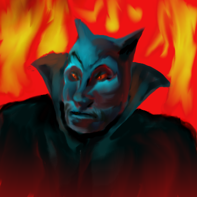 "Wow" "DaVinci"!! I'm glad to see you doing some draws!! This is a really cool draw......you did a great job on this. If you decided to add a round red nose on this guy....he could be a "devil clown"!! LOL!! :D