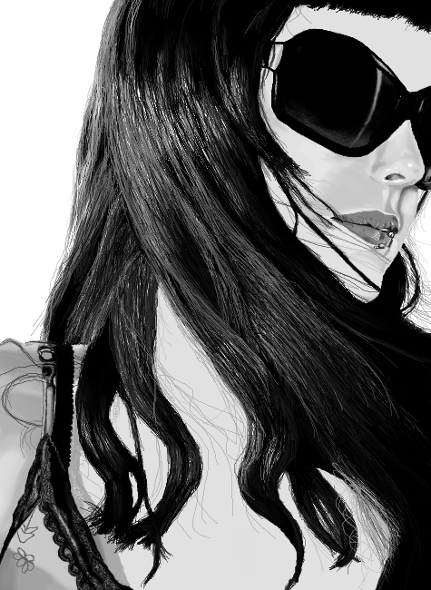 Some of my favorite drawings are black n white drawings and this one is stunning. Love her hair. Very nice drawing.
