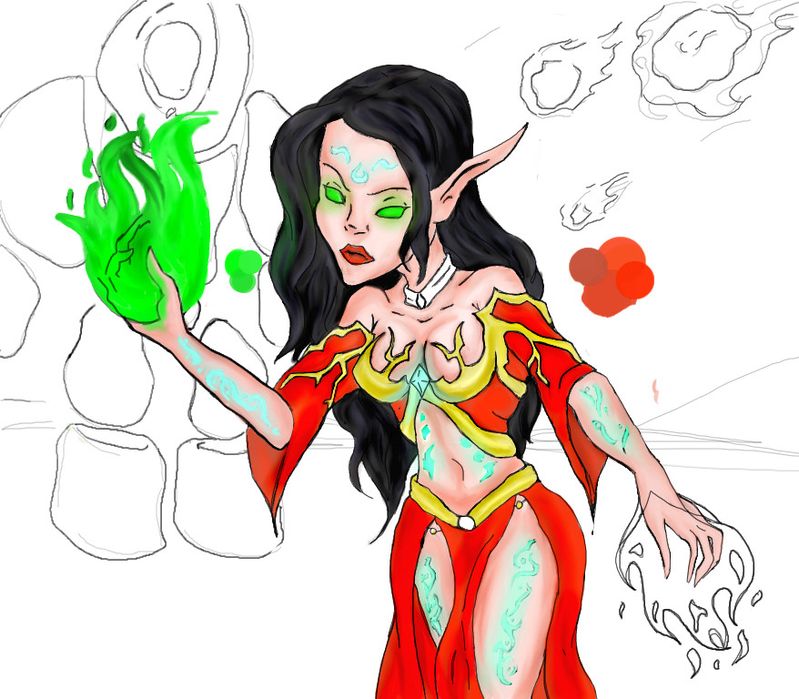 Thanks sam :) Well, for a Blood Elf their eyes are green because they are sort of demonic. And the fire is green because they are a warlock, so they are pretty much the same. Thanks for the advice though. I appreciate it :)