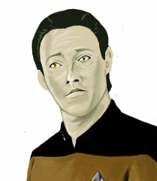 ...I just remembered while drawing this why Data freaked the hell out of me when I was a kid.....HIS EYES! They were so light that most of the time the irises look white instead of yellow so it's almost like he didn't have any. O.o
