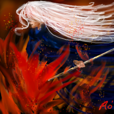 | Aozora (Apr 30, 2009)Was feeling random and hopped over here. First time painting flames, doesn't look too disastrous to me.. There was supposed to be some other details, but unfortunately i made those after i pressed the 'sent oekaki' option. *mumbles* How very silly of me.. sigh