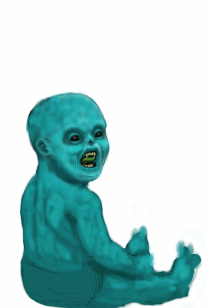 That's the scariest looking baby that I've ever seen....."lol"!! Is it supposed to be "Rosemary's" baby??? :)