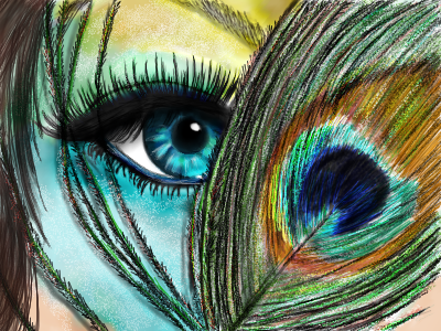Beautiful, love all the colors from the feather to her face.