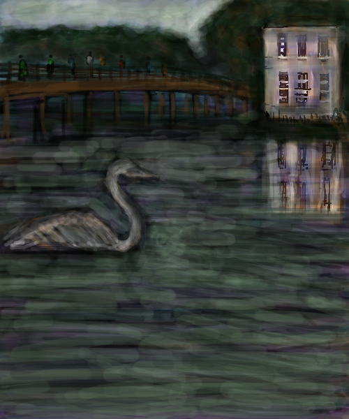 This is really nice......it does look like a gloomy day.....but it's still very pretty.....I love the swans and ducks. :)