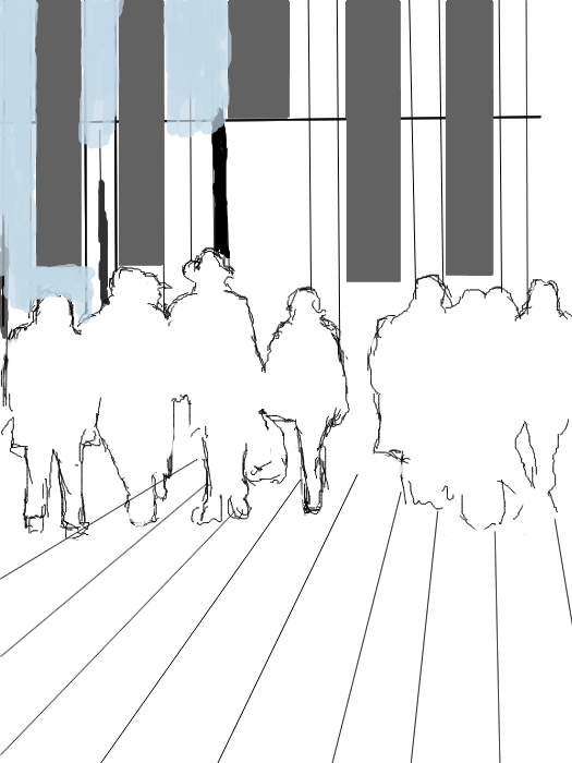 Real evocative scene. Makes me think of...shift change at a mill or a mine or a factory or the docks in...Dublin.