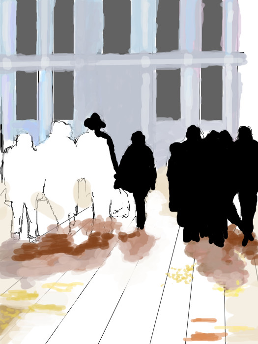 Real evocative scene. Makes me think of...shift change at a mill or a mine or a factory or the docks in...Dublin.