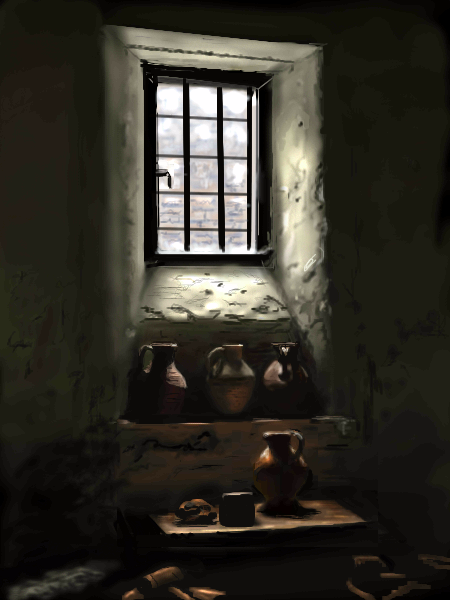 This is definitely showcase stuff! Wow! It is so full of atmosphere, texture, lighting...just amazing!! It looks as if you're just standing right there in the room when you're looking at it! Incredible!