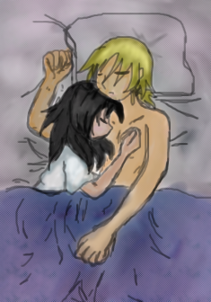 No, he is not naked. Most guys sleep without a shirt. D:I drew this for a friend, Lol. I still need practice on hands. I've never drawn a picture like this before. o.< I need practice with group pics, too, Lol.