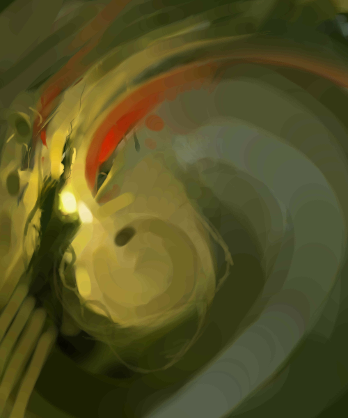 The thumb looks like a a girl with very impressive hair and the real thing looks like a fune textured scorpid. First version is also interesting, it ranges from the creature I saw at first glance to the girl with braid I see now.