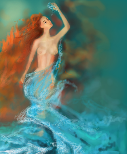 It's nice how the hair take the form of a fire, and descends and slightly fades until it reaches water.