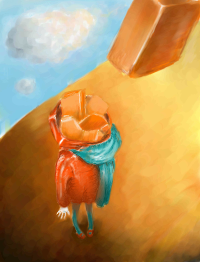 This is sweet, it gives me the impression she is high up in the sky on a platform.