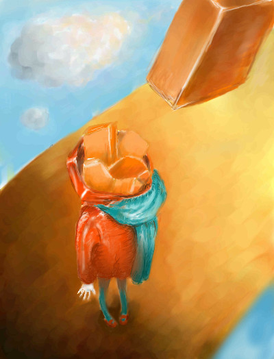 This is sweet, it gives me the impression she is high up in the sky on a platform.