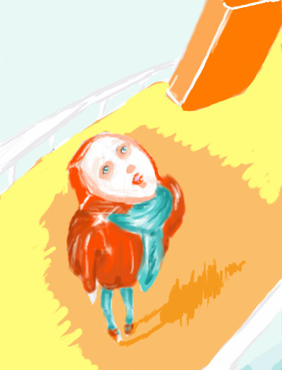 This is sweet, it gives me the impression she is high up in the sky on a platform.