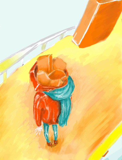 This is sweet, it gives me the impression she is high up in the sky on a platform.